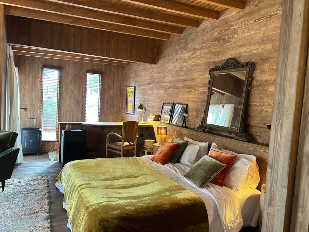 Huit chambres et suites, décorées avec soins, deux cabanes nichées sous les grand arbres, un jardin aux multiples recoins, une piscine chauffée et abritée du vent des Alizés par son beau mur bleu Majorelle, un bassin pour les petits, un hammam et un cinéma d’extérieur pour les chaudes soirées d’été….